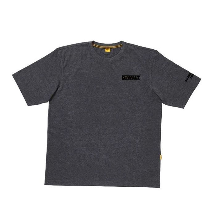 Classic charcoal grey DeWalt T-shirt with ribbed crew neck and subtle branding — a durable, everyday work tee.