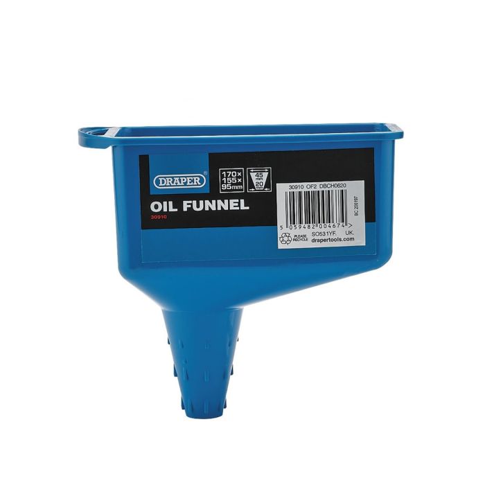 The Draper 30910 Oil Funnel 0.6 Litre is made for clean, confident fluid top-ups—whether you’re working in the garage, workshop, or on-site. Shaped specifically to suit square and rectangular oil bottles, it helps guide fluids smoothly into place and reduces messy spills when you’re pouring from awkward containers.