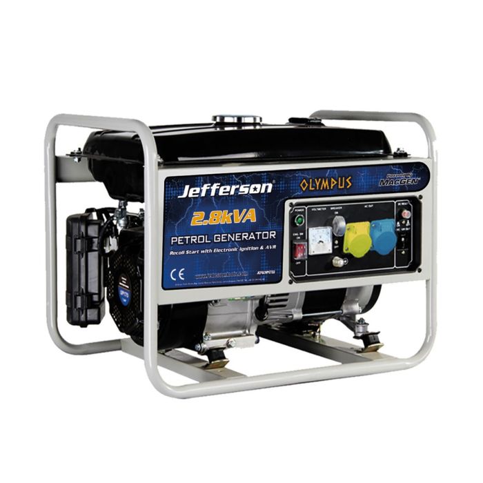Compact, durable, and ready when you need it, the Jefferson 2.8kVA Petrol Generator provides reliable backup and on-site power for tools, lighting, and essential equipment. With AVR-regulated output, recoil start, and a long-run 15L fuel tank, it’s ideal for workshops, farms, and maintenance crews who need dependable portable power without the noise or complexity of larger systems.