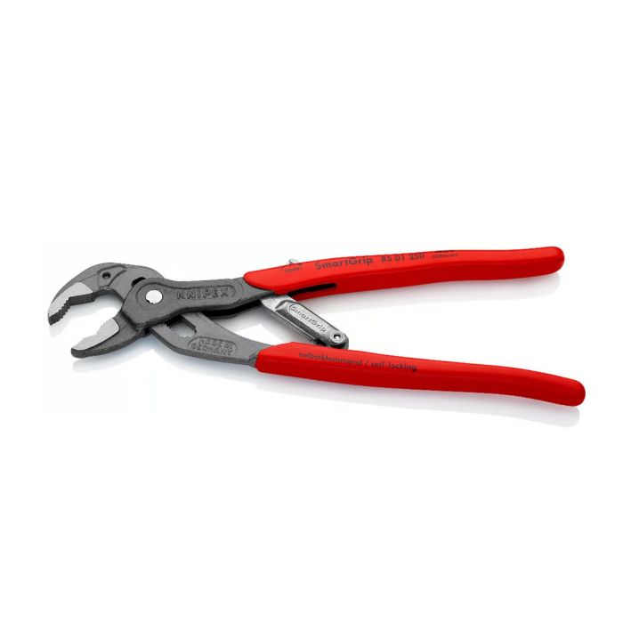 When a job moves from one fitting size to the next, stopping to readjust your pliers slows everything down. The KNIPEX 85 01 250 SmartGrip is built for fast, practical work on mixed-size pipes, nuts and fittings. Place the jaws on the workpiece, squeeze, and the pliers automatically adjust to the size in one hand. That makes them especially useful for plumbing, plant maintenance, site work, service vans and general workshop jobs where speed and control matter.