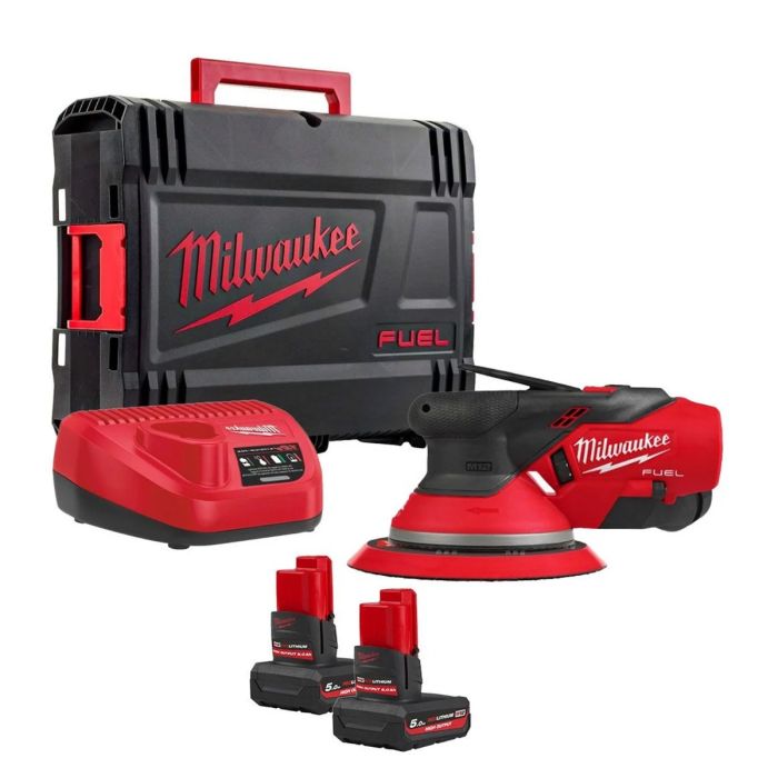 The Milwaukee M12 FUEL 150 mm Random Orbital Sander 5.0 mm Orbit Kit is engineered for professionals who require powerful, consistent sanding performance without the limitations of cords, hoses, or compressors. Supplied as a complete ready to work kit, this model includes two M12 HIGH OUTPUT 5.0 Ah batteries, an M12 charger, and a durable HD Box, making it ideal for both workshop and on site use.
