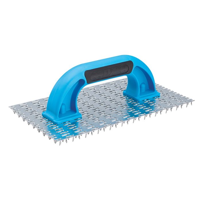 The OX Tools OX-T051425 Trade Render Scraper 250 x 130mm (10in) is designed for keying and scraping render surfaces with speed and control. Its galvanised metal spiked base plate helps create the surface texture needed for strong adhesion, while the heavy-duty two-component handle provides a secure and comfortable grip during repeated use.