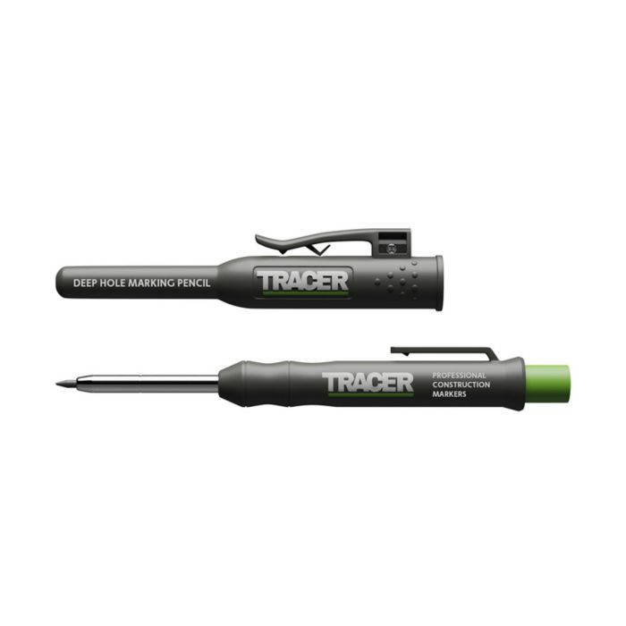 The Tracer ADP2 Deep Hole Construction Lead Pencil Marker With Site Holster is built for tradespeople who need reliable marking in places where standard pencils cannot reach. Its slim extended nose and fully extendable 2B graphite lead allow it to mark deep inside fixing holes, through timber, and into narrow gaps, making it especially useful for carpenters, joiners, kitchen fitters, installers, and general construction work. It is designed to produce clear, visible marks on common site materials including wood, plastic, ceramics, and metal.
