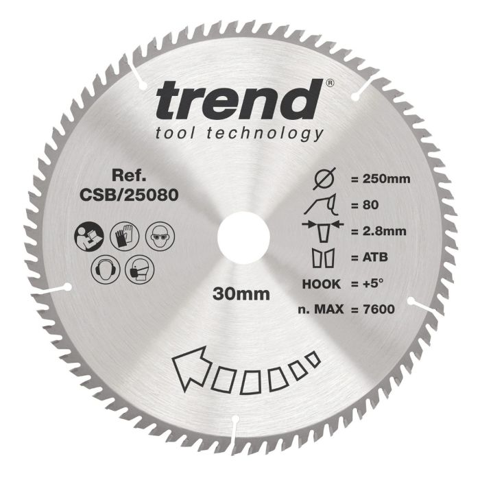 Trend CSB/25080 250mm x 30mm x 80T Wood Circular Saw Blade