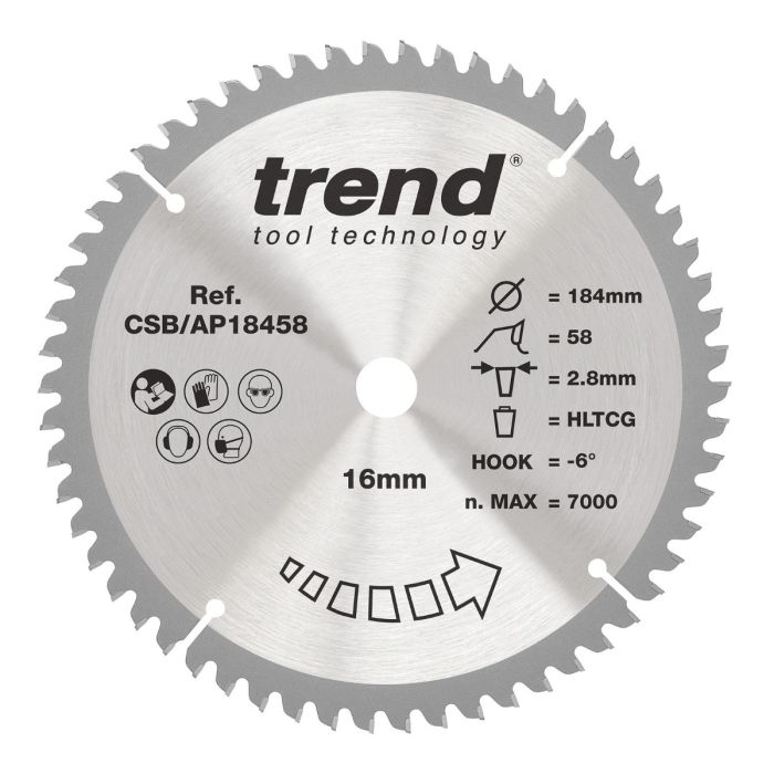 Trend CSB/AP18458 Aluminium & Plastic Circular Saw Blade 184mm x 16mm x 58T