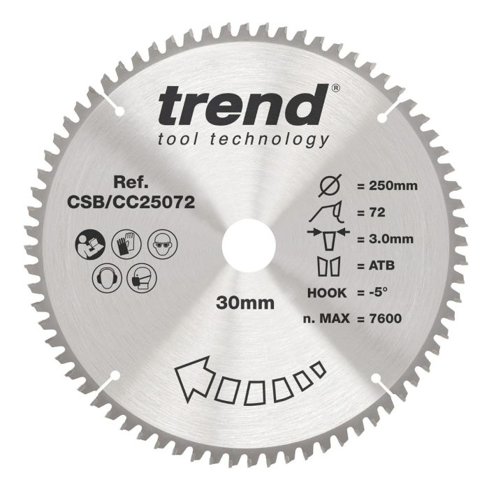 Trend CSB/CC25072 Wood Mitre Saw Blade 250mm x 30mm x 72T