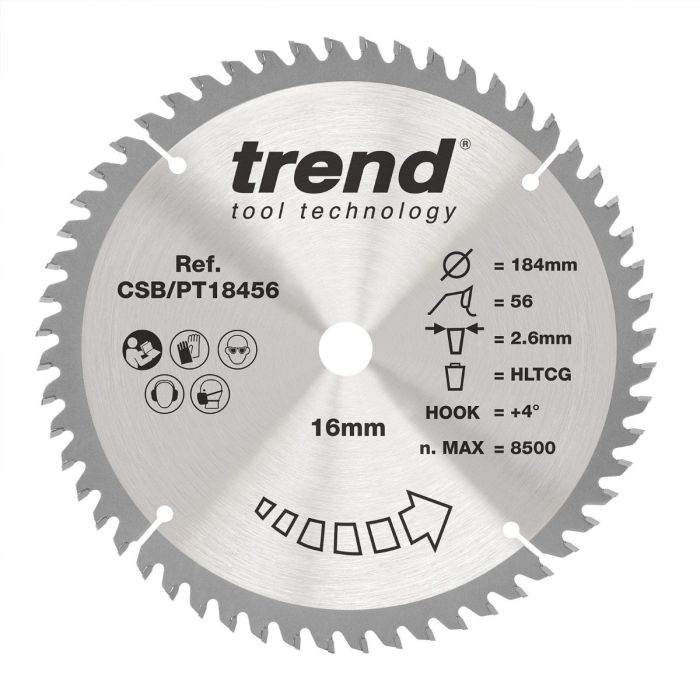 Trend CSB/PT18456 Laminate HPL Circular Saw Blade 184mm x 16mm x 56T