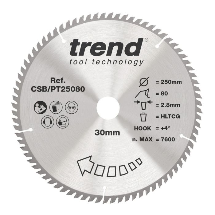 Trend CSB/PT25080 Laminate HPL Circular Saw Blade 250mm x 30mm x 80T