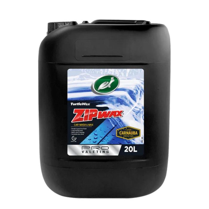 The Turtle Wax Zip Wax Pro Wash & Wax (20L) is a professional-grade car shampoo enriched with Carnauba wax. Its concentrated formula deep cleans, foams intensely, and leaves a streak-free, glossy finish with long-lasting protection.