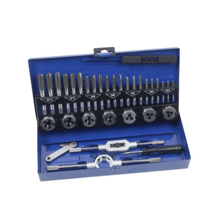 All components are neatly organised in a durable metal storage case, keeping the tools protected, easy to identify, and ready for use whenever a threading job arises. Whether you are repairing damaged threads or cutting new ones, this set delivers reliable performance for everyday mechanical and maintenance work.