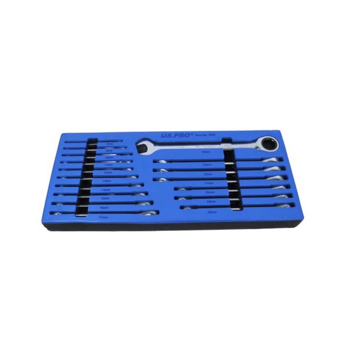 US PRO 3566 17 Piece Metric Gear Ratchet Combination Wrench Set 8mm to 24mm