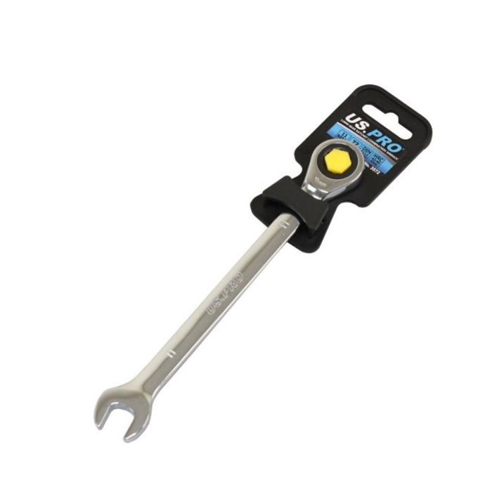 The US PRO 3572 11mm Gear Ratchet Combination Wrench is made to DIN 3113 and uses a 72 tooth mechanism for fine movement in confined areas. The open end helps you locate the fastener quickly, while the ratcheting ring end maintains steady progress without removing the wrench from the nut or bolt. Supplied as a pack of 10 on hangers, it suits workshops, training environments, and tool-control systems where spares and consistency matter.