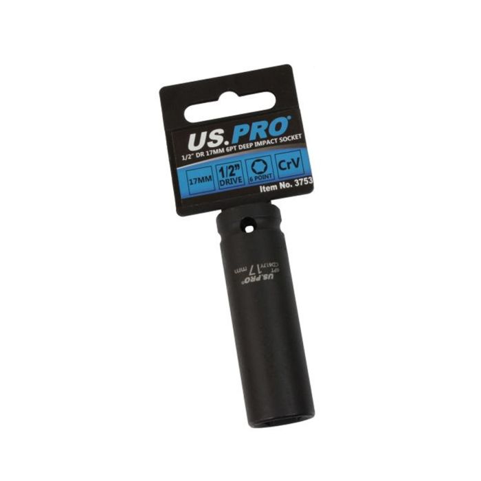 The US PRO 3753 17mm deep impact socket is designed for applications where extra reach and durability are required. The deep profile allows access to recessed fasteners, while the 6 point design ensures strong engagement and reduced risk of rounding under load.