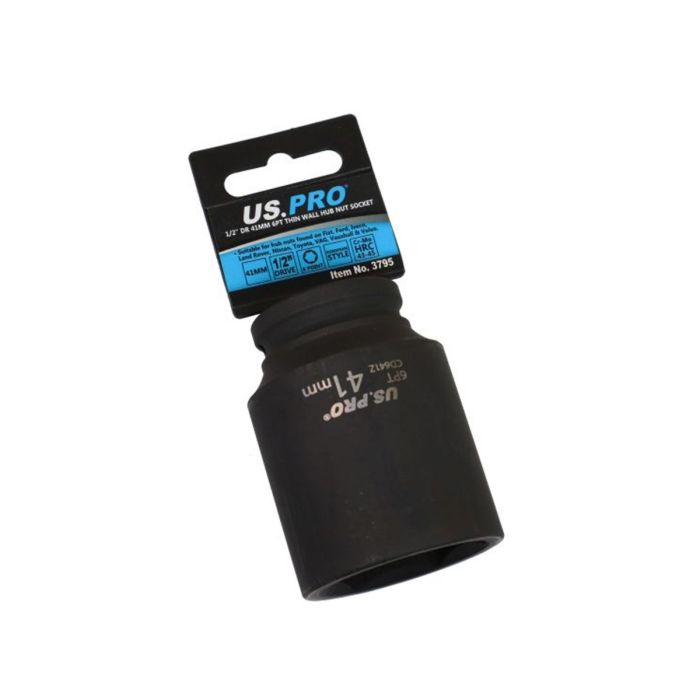 The US PRO 3795 41mm thin wall hub nut socket is designed for working in tight and restricted access areas where standard sockets are too bulky. Its thin wall Euro-style profile allows easy access to recessed hub nuts while maintaining the strength required for high-torque impact applications.