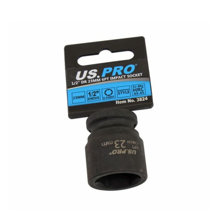 US PRO 3824 23mm Impact Socket 1/2 Inch Drive 6 Point Euro Style Box of 10