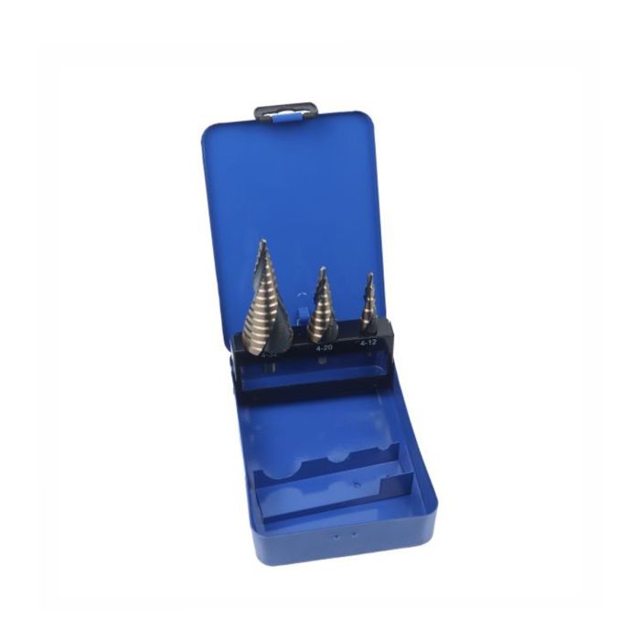 3 piece spiral step drill set covering 4mm to 32mm