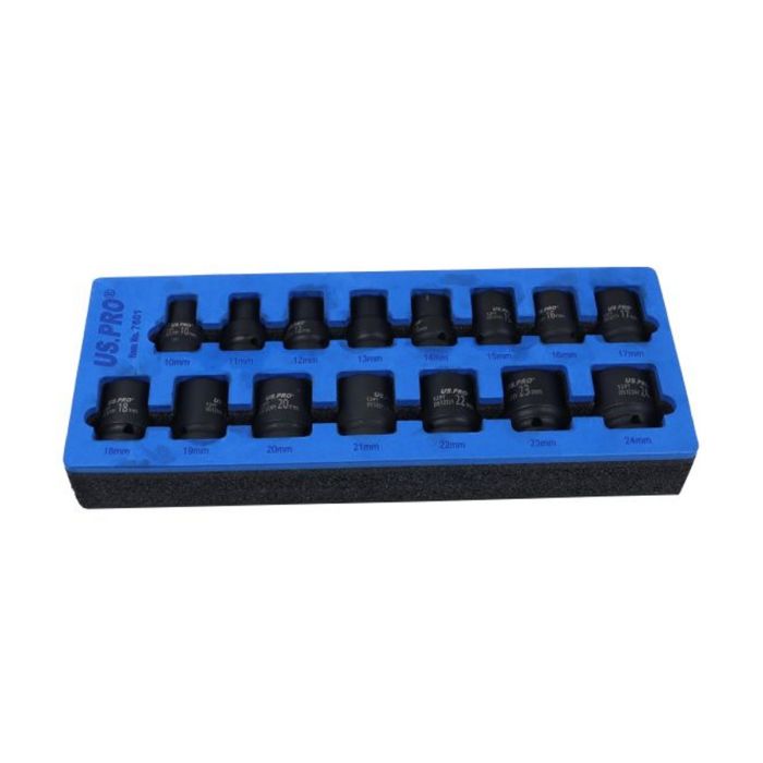 US PRO 7601 15pc 1/2" Drive 12 Point Shallow Impact Socket Set 10–24mm