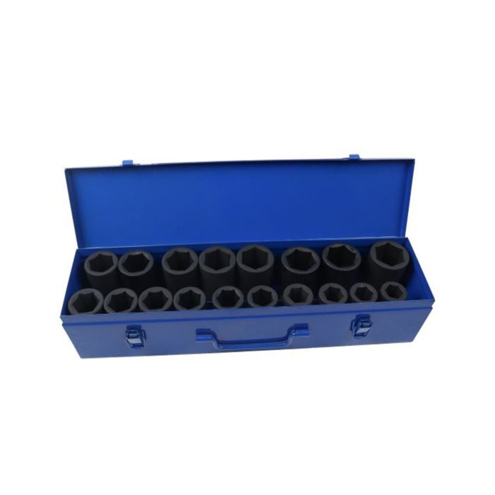 The set covers a comprehensive range of metric sizes from 19mm to 36mm, making it ideal for HGVs, plant machinery, construction equipment, and industrial maintenance. Supplied in a robust metal storage case, the sockets remain organised, protected, and easy to transport.
