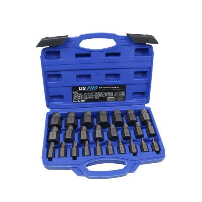 The US PRO 7634 25 Piece Screw Extractor Set is engineered to tackle one of the most frustrating workshop problems—damaged or seized fasteners. Designed for professional mechanics, technicians, and serious DIY users, this versatile set provides reliable extraction across a wide range of bolt, screw, and stud sizes.