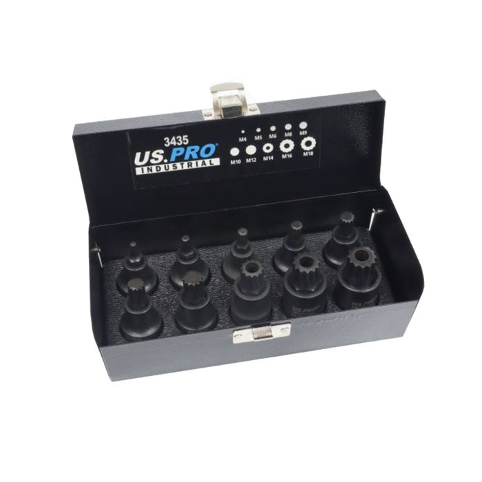 US PRO Industrial 3435 10pc 1/2" Drive Impact Spline Bit Socket Set (M4–M18, Tamper)