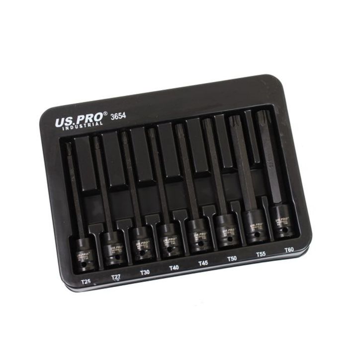 US PRO Industrial 3654 8pc 3/8" Drive Extra-Long Impact Star Bit Socket Set (T25–T60)
